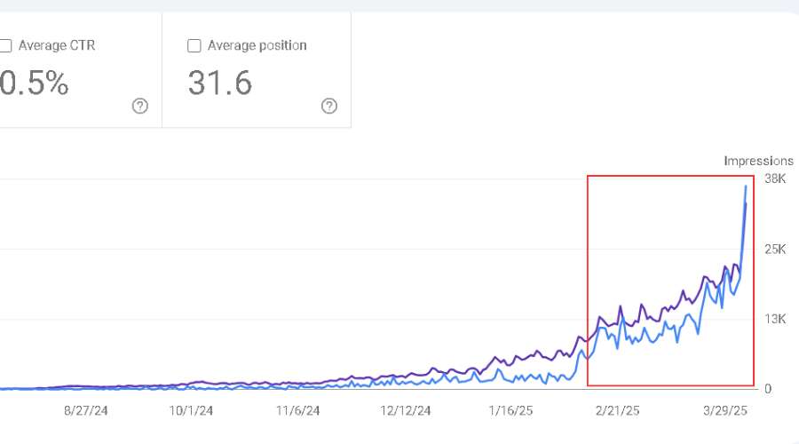 That’s a +517% increase in clicks and a +286% boost in impressions — all without spending a dime on ads.